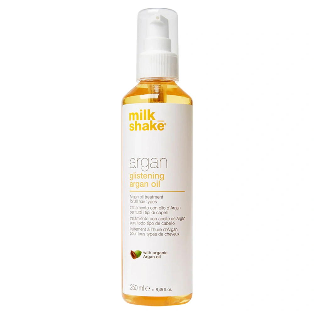 Provide your hair with immediate conditioning and nourishment with the Milk_Shake Argan - Glistening Argan Oil. This oil treatment provides hair with anti-aging and protective properties and helps to maintain soft and shiny hair. The Milk_Shake Argan - Glistening Argan Oil uses a special mix of conditioning volatile silicones to leave hair looking beautiful, right after the first application. This oil also includes organic argan oil, which provides the hair with a multitude of benefits. These include moisturizing, hydrating, strengthening, protecting, reducing frizz, and improving overall hair health and shine. The Milk_Shake Argan - Glistening Argan Oil immediately conditions and nourishes hair, giving strands a healthy look and voluminous and incredibly bright effect.