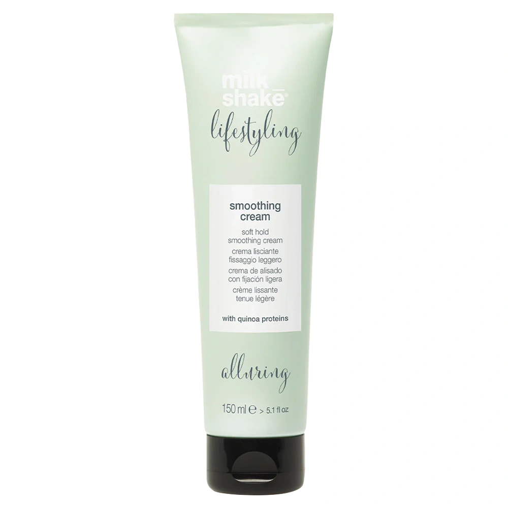 The Milk_Shake Lifestyling Smoothing Cream is ideal for medium to coarse hair and helps to enhance hair's shine while protecting and conditioning hair weightlessly. This cream is designed to help smooth down hair strands and protect them from heat and styling tools. The Milk_Shake Lifestyling Smoothing Cream additionally provides the hair with conditioning, manageability, and resistance to humidity. This cream is infused with hydrolyzed quinoa, hydrolyzed chestnut extract, silk proteins, and fruit extracts, as well as a UV filter. Organic Chestnut Extract provides hair with heat protection, repairs the hair fiber, and prevents dehydration without weighing the hair down, while the UV filter protects from UV rays that dehydrate hair, causing color-fading. Quinoa Proteins help to protect hair color and prevent premature fading, while also increasing hair's manageability and shine levels. Lastly, the Milk_Shake Lifestyling Smoothing Cream includes Silk Proteins that form a barrier around the hair shaft, protecting hair from heat.