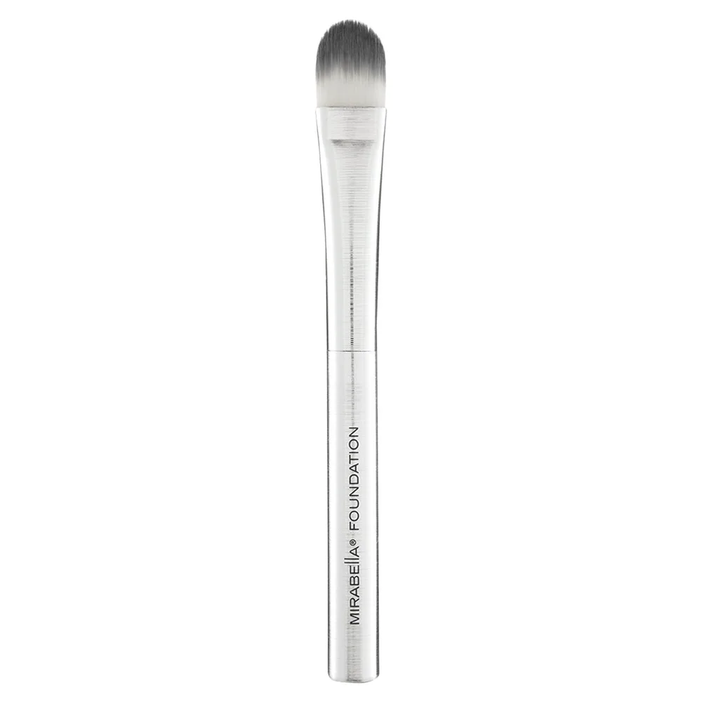 Synthetic wide foundation brush minimizes the waste of product and provides hygienic application of your makeup. Mirabella has hand-sculpted these brushes and they are made of the finest quality materials and feature exclusive brushed aluminum ferrules and handles.