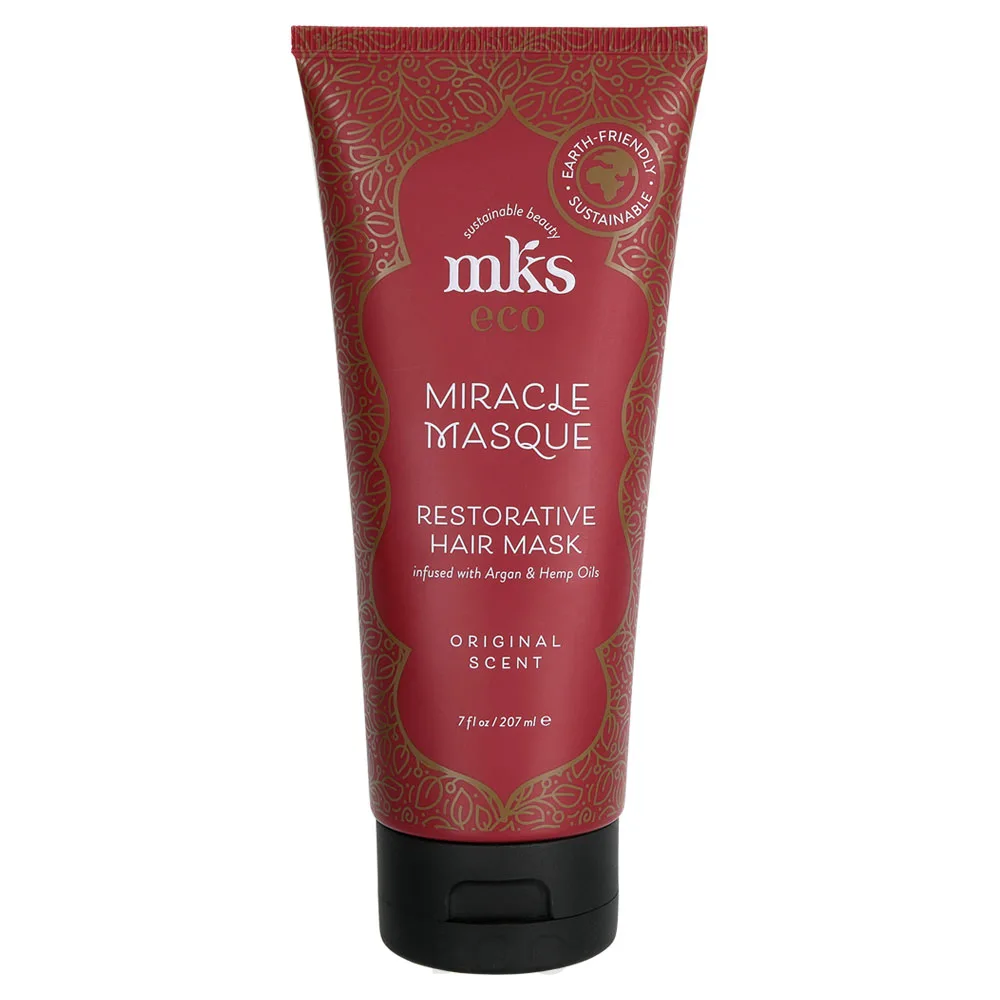 MKS Eco Miracle Masque uses the combination of Argan Oil and Hemp Oil to restores shine, strength and health back from dry damaged and or chemically treated hair.