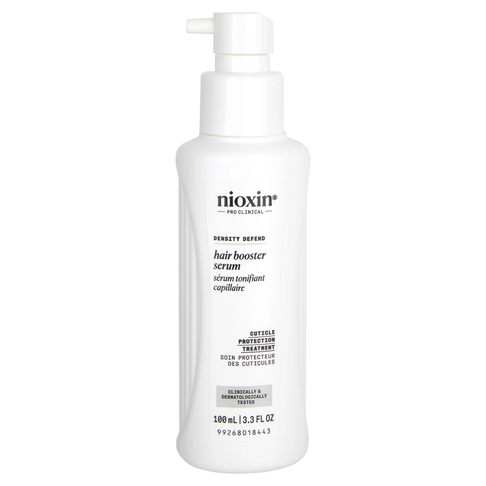 The Nioxin Density Defend Hair Booster Serum Cuticle Protection Treatment features an ultra-concentrated formula with CoZyme-10 Vitamin Complex, targeting areas of advanced thin-looking hair such as the hairline or crown. Keratin helps protect against cuticle damage and boost fragile hair. This hair treatment also uses HBT Technology, designed for progressed-thinning hair and works on specific areas of concern, such as a receding hairline or a low-density crown. It provides conditioning to the hair and forms a protective barrier around that hair to protect against cuticle damage. Designed to complement your Nioxin 3-Part System. The Nioxin Density Defend Hair Booster Serum Cuticle Protection Treatment is used twice daily, in the morning before your Scalp Treatment and again in the evening. Its vitamin-enriched formula will give a temporary redness to the skin after application, and it gives a warming sensation.
