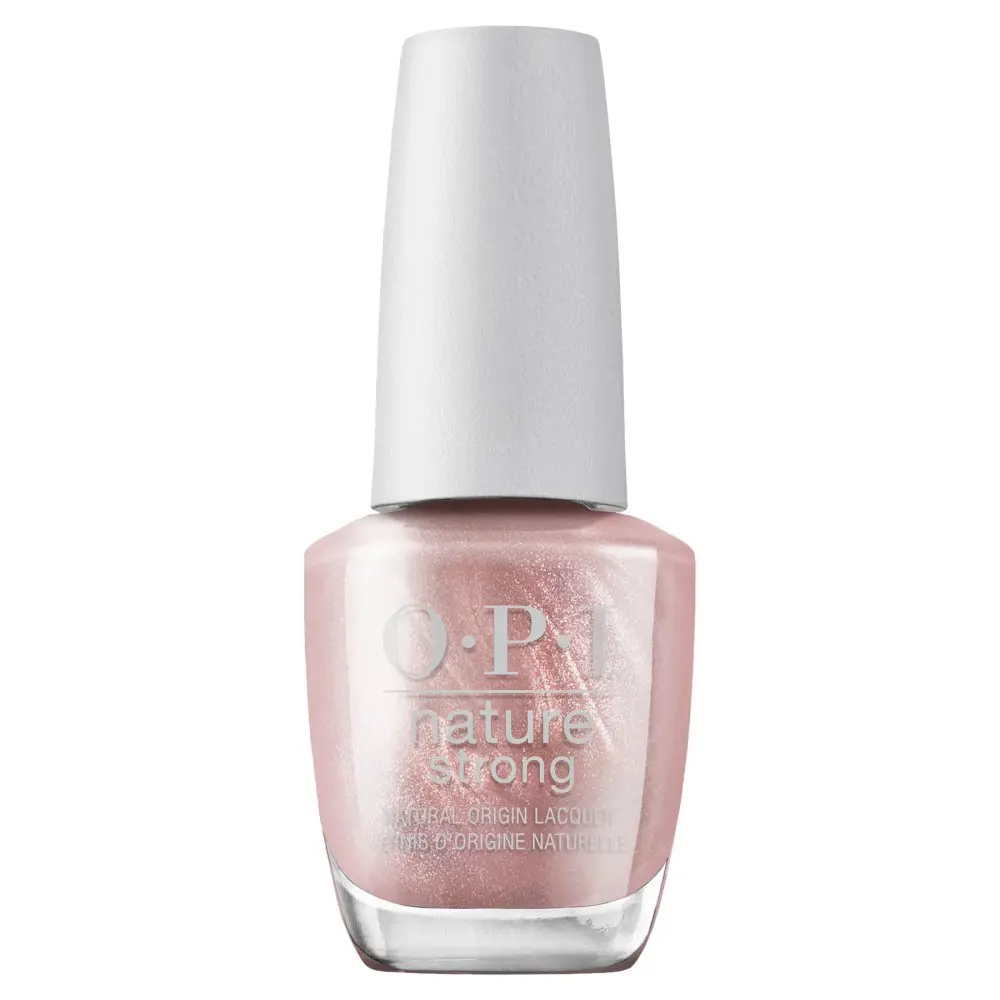 Shine with positive energy with this stunning polish. The OPI Nature Strong Natural Nail Lacquer - Intentions Are Rose Gold is a pale pink shimmering polish that will have you planning for a brighter future. The OPI Nature Strong collection is OPI's first natural origin nail lacquer, which lasts up to seven days of wear and shine. Use your natural-origin nail polish shade with Nature Strong Top Coat for extended wear. These natural and vegan nail lacquers are extremely powerful and are available in many shades, glitters, and base and top coats to up your vegan routine!