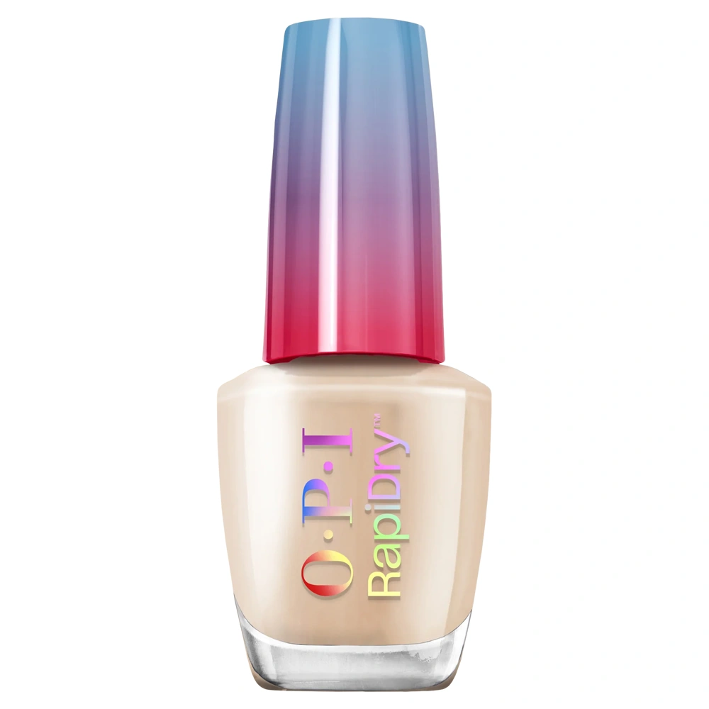 End the reign of smudgy manis with this nail polish. The OPI RapiDry - Quick Sand is a neutral sandy brown nail polish that will save you from smudges while drying faster than you can say "SOS!" The OPI RapiDry collection dries quickly and dries through thanks to built-in Drip Dry Drops and speedy solvents, this collection delivers smudge-proof nails in as little as 60 seconds. Additionally, these polishes feature a Speedy Rush Brush that is designed with 200 extra bristles and a wide fanning brush for faster product pickup, spreading, and drying.