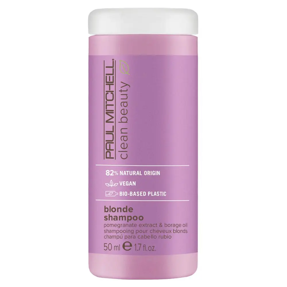 The Paul Mitchell Clean Beauty Blonde Shampoo is a purple-based shampoo that gently cleanses fragile blonde hair strands while helping to target brassy and warm tones to eliminate them. This shampoo is infused with antioxidant-rich pomegranate extract to protect hair from environmental exposure and free radical damage. It also helps to boost hair strength directly at the follicle while also boosting scalp circulation. The Paul Mitchell Clean Beauty Blonde Shampoo also uses Borage Oil to help reduce the visible signs of damage while restoring hair's radiance, resulting in lighter and brighter blondes. This shampoo is crafted with ingredients that are of 82% natural origin and is free from harmful chemicals like sulfates, parabens, formaldehyde, formaldehyde-releasing agents, mineral oil, coal tar, hydroquinone, and triclocarban. It also is free from gluten and is vegan and cruelty-free.