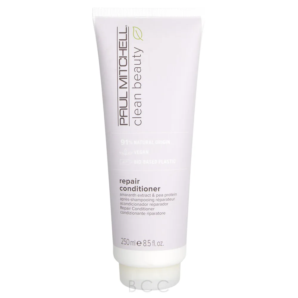 Nurture your fragile damaged hair with the Paul Mitchell Clean Beauty Repair Conditioner. Made with organic amaranth extract and vegan pea protein to help strengthen and balance moisture, this reconstructing conditioner gently conditions and helps protect hair from physical and chemical damage. With a rich consistency, this conditioner will make detangling hair a breeze! Amaranth Extract provides hair strands with amino acids that help strengthen hair and repair damage, while Pea Protein helps to keep hair hydrated and prevents breakage. Additionally, Pea Protein also helps to balance moisture to help maintain elasticity. The Paul Mitchell Clean Beauty Repair Conditioner is made from 90% natural ingredients and is vegan, cruelty-free, paraben, and gluten-free.