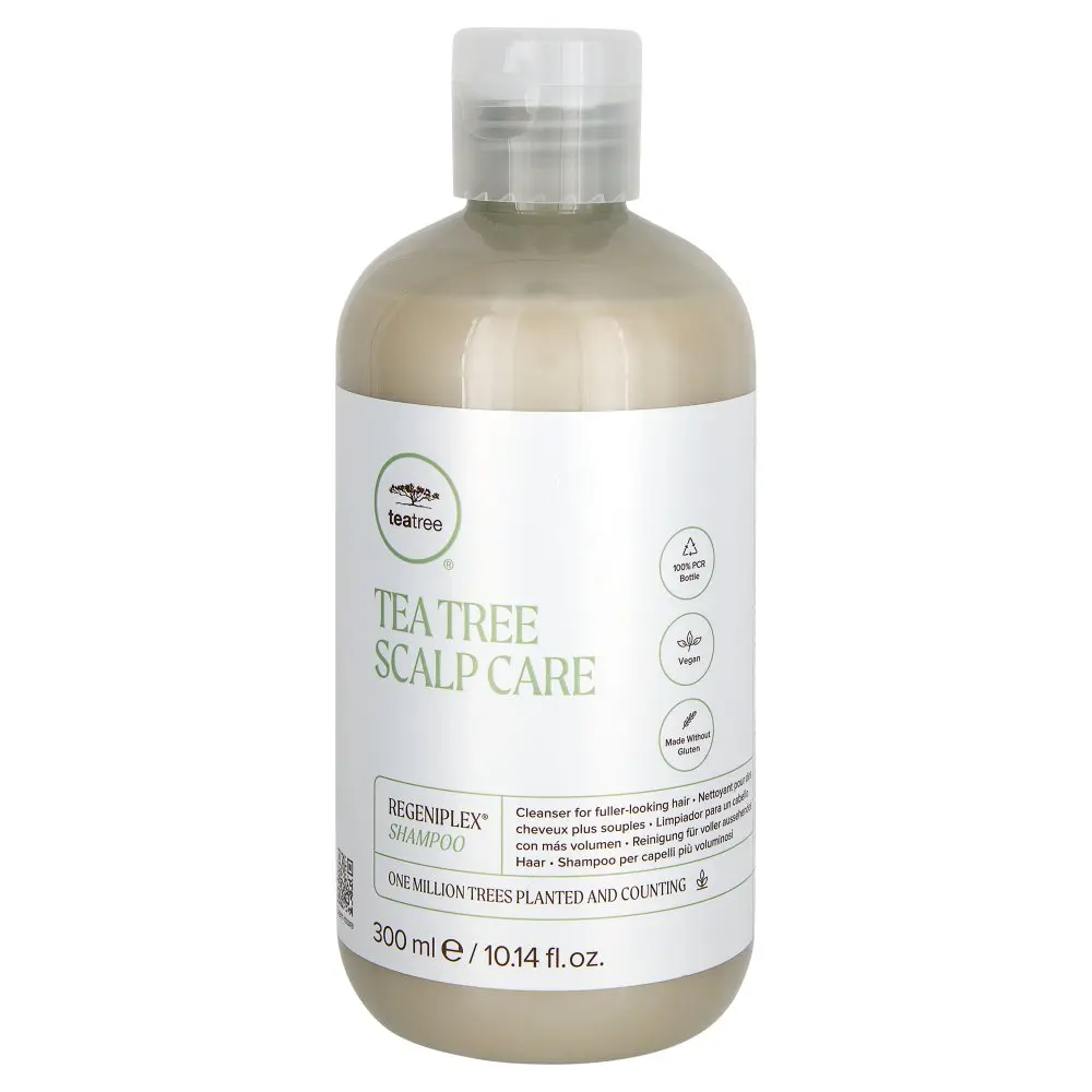 The Paul Mitchell Scalp Care Regeniplex Shampoo gently removes impurities to prime the scalp for stronger, thicker-looking hair. Helps add volume by thickening each strand. Paul Mitchell Tea Tree Scalp Care Regeniplex Shampoo is formulated with a botanical blend of Kakadu plum, pea peptides, cover flower, turmeric, and ginseng to help revitalize the scalp and help the hair to look thicker and fuller with each use. This shampoo features an uplifting scent of lemon, basil, and fir with notes of patchouli, vanilla, and amber. Follow up with Steps 2 and 3 for the full benefits of fuller, thicker hair.