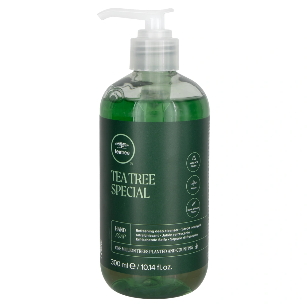 The Paul Mitchell Tea Tree Hand Soap is a rich, soothing antibacterial cleanser designed with germ-fighting Triclosan and natural tea tree oil. This hand cleanser gently washes away dirt and grime and leaves the hands with a refreshing clean tingly feeling that Paul Mitchell is known for. It helps to invigorate the senses with the reviving fragrance of lavender, tea tree, and peppermint. The Paul Mitchell Tea Tree Hand Soap is vegan, paraben-free, gluten-free, and cruelty-free.