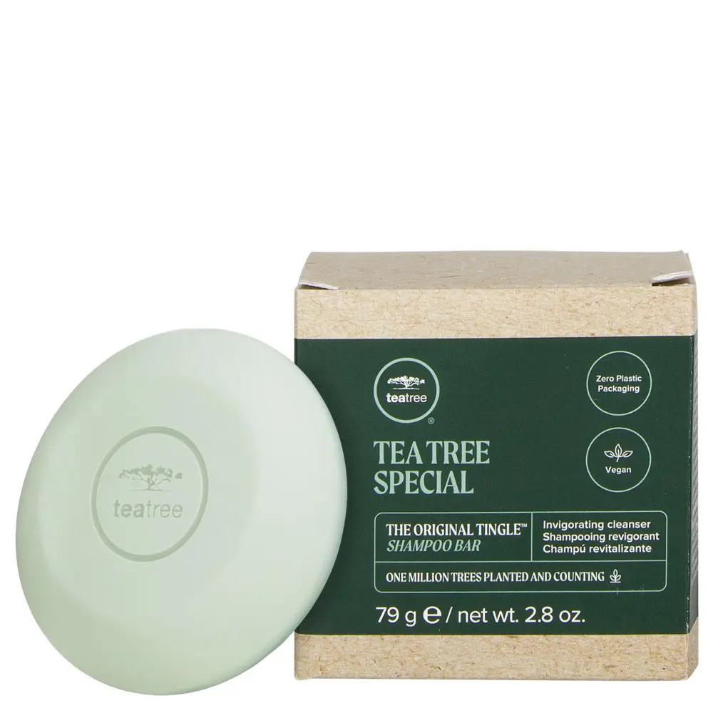 Experience all the benefits of Paul Mitchell's best-selling shampoo in a convenient bar form with the Paul Mitchell Tea Tree Special Shampoo Bar. This ultra-refreshing shampoo is infused with ingredients that are 95% natural and are designed to help invigorate both your mind and body. The Paul Mitchell Tea Tree Special Shampoo Bar uses Paul Mitchell's famous Tingle Complex, which is a blend of tea tree, peppermint, and lavender to leave your scalp with a cooling/tingling sensation. These ingredients also help to give this shampoo its wonderful fragrance, helping you to create an aromatherapy-inspired experience. The Paul Mitchell Tea Tree Special Shampoo Bar is ideal for all hair types and textures and is formulated without sulfates, making it gentle on color-treated hair types. Packaged in a carton made from recycled materials, this shampoo bar is helping with Paul Mitchell's long-standing commitment to the environment.