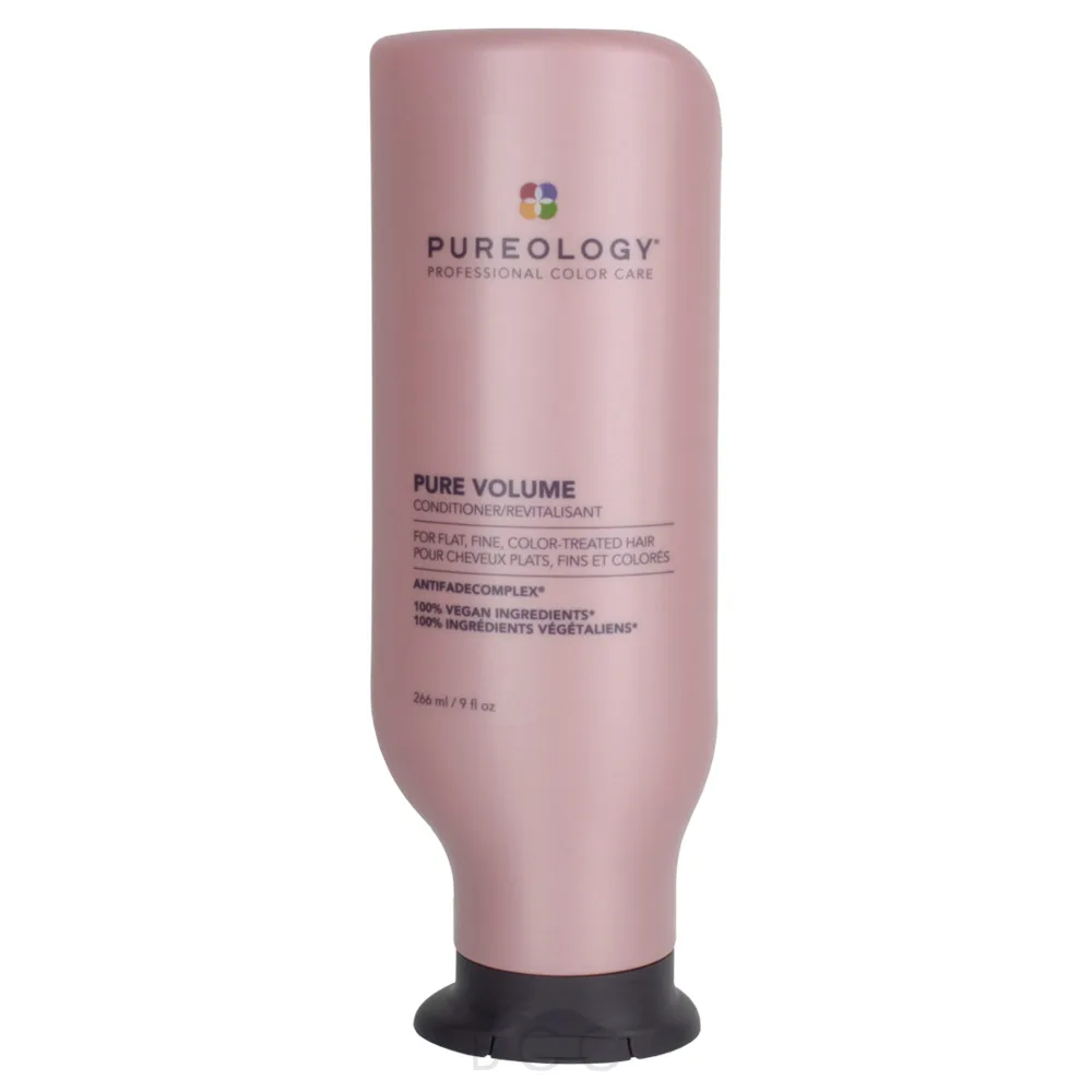 This conditioner is made with a body-boosting formula that infuses the hair with airy movement and fullness while providing extraordinary color protection. Does not weigh the hair down and leaves behind there signature aromatherapy blend of pink grapefruit, wild rose, and cedarwood. The Pureology Pure Volume Conditioner contains Pureology's Anti-fade Complex which contains sunflower seed that acts as a UV filter for the hair, as well as Vitamin E to fight color-depleting environmental effects. The Pureology Pure Volume Conditioner is also formulated with Wheat protein to add incredible volume as well as Eucalyptus leaf extract that helps to support hair follicles for optimal growth. This ultra-lightweight formula allows finer strands to rise to the occasion while still maintaining movement.