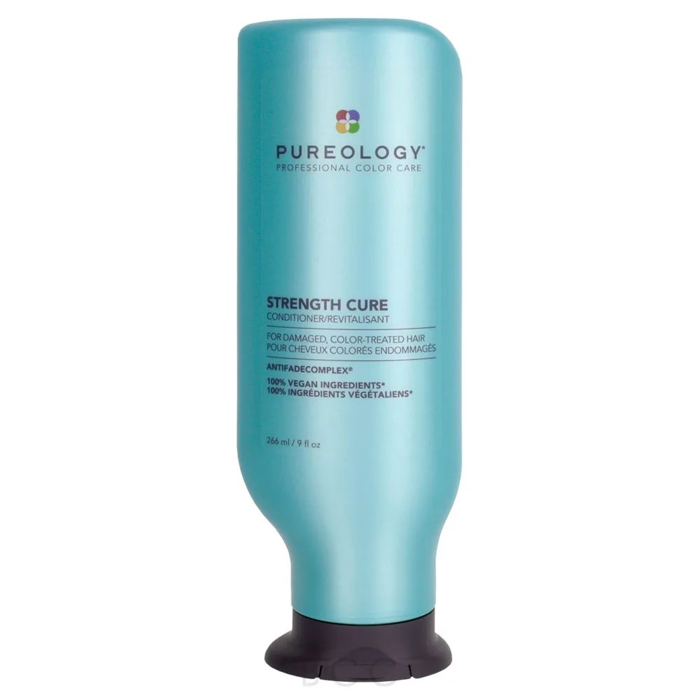 The Pureology Strength Cure Condition formula is made with their exclusive Anti-fade Complex which detangles, strengthens, and conditions to improve hair's touch and light reflection. This complex also helps to protect color vibrancy and ensure lasting color payoff. It uses Sunflower Seed as a UV Filter, and Vitamin E to fight color-depleting environmental effects while ensuring lasting shine. The Pureology Strength Cure Conditioner is also formulated with plant-based protein Keravis that strengthens strands and prevents damage while the powerful antioxidant Astaxanthin helps heal and repair. It is fragranced with sweet raspberry and peach blended with fresh water flowers.