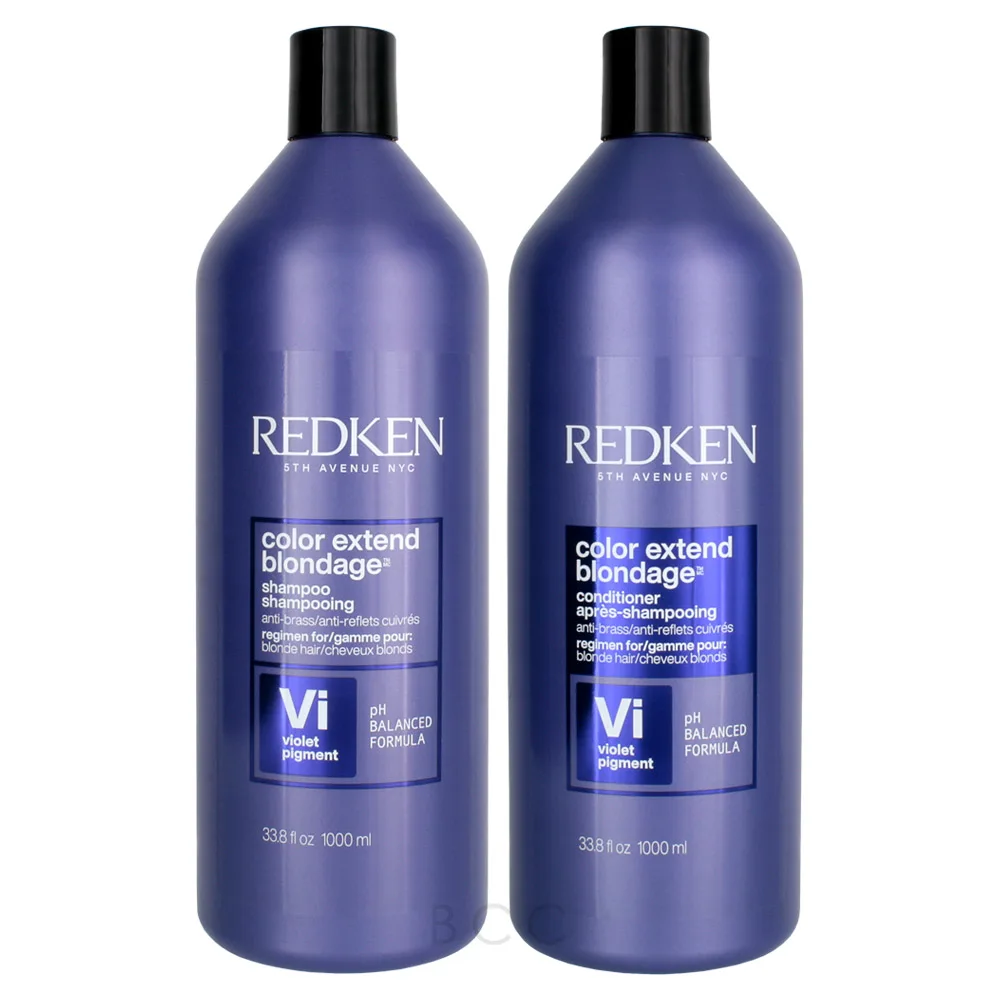 The Redken Blondage Shampoo & Conditioner Set is a remarkable duo designed exclusively for blonde hair. This dynamic purple shampoo and conditioner combo not only enhances the vibrancy of your hair color but also fortifies and rejuvenates your locks. With this set, you can maintain the stunning allure of your blonde hair in between salon visits by effortlessly banishing those undesirable brassy and yellow undertones. The Redken Blondage Shampoo boasts an exceptional ingredient: salicylic acid. This powerful component penetrates deep into your hair, strengthening and restoring it from within. Furthermore, the shampoo's infusion of pure violet pigment eliminates any unwelcome brassiness, leaving your hair with a brilliant, pure blonde hue. Accompanying this remarkable shampoo, the Redken Blondage Conditioner harnesses the revitalizing prowess of citric acid. By harnessing this natural ingredient, the conditioner offers potent strengthening and repairing properties specifically tailored for blonde hair. Your locks will experience a newfound vitality and resilience, ensuring they remain healthy and lustrous.