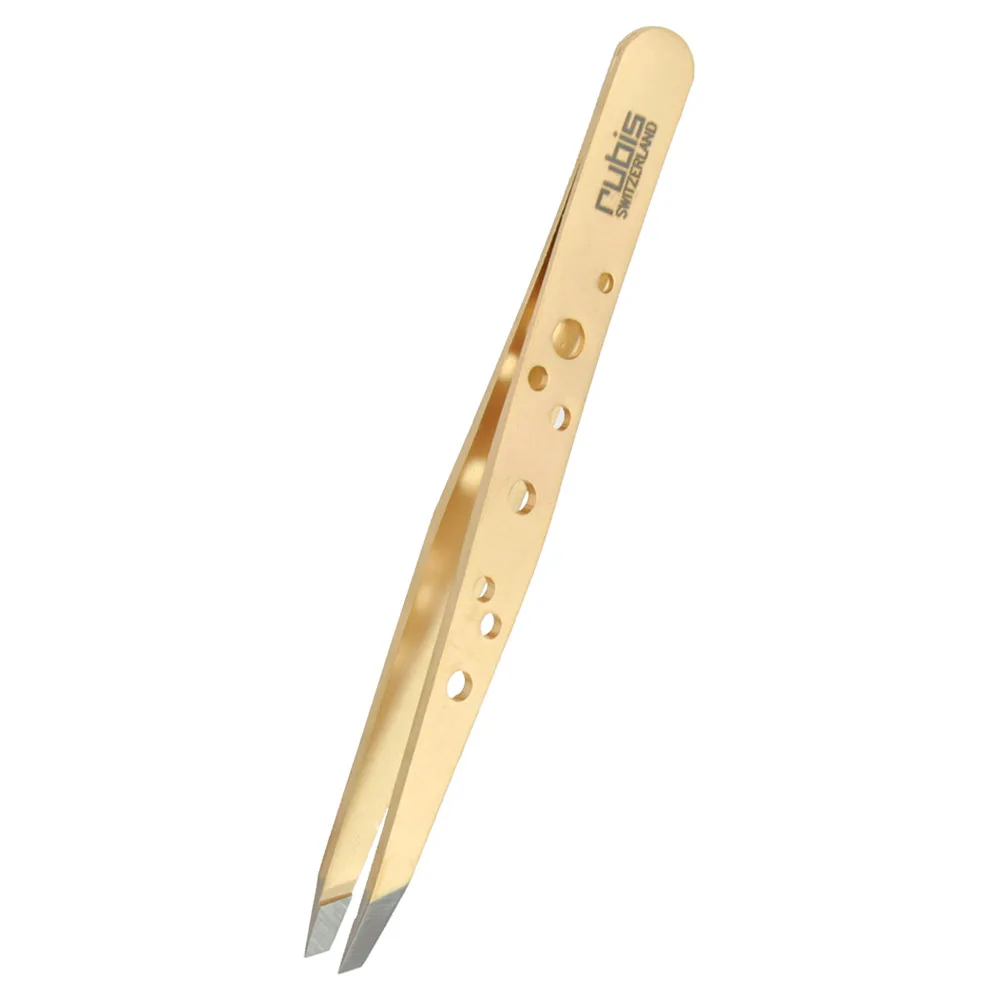 Rubis Switzerland Swiss Tweeze Slanted Tip Tweezers Gold