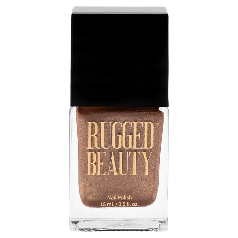 Bronze is always a winner in our books with the Rugged Beauty Nail Polish - Bronze. Bronze is the new gold with this mesmerizing shimmery metallic polish. Infused with light-reflective pearl extract to give your nails a stunning finish. Each Rugged Beauty polish has a removable square cap to reveal a smaller round cap for simple and quick application.