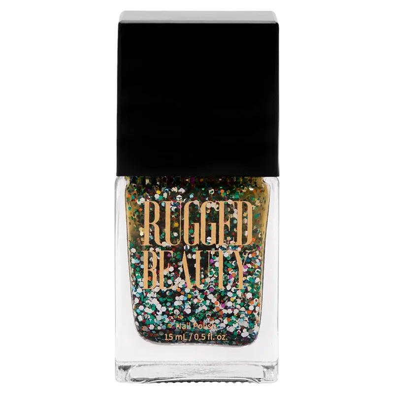 Have perfect holiday nails with the Rugged Beauty Nail Polish - Christmas Tree. This stunning multicolored glitter polish pairs well with any other holiday color and really adds an extra touch to your nails. Each Rugged Beauty polish has a removable square cap to reveal a smaller round cap for simple and quick application.