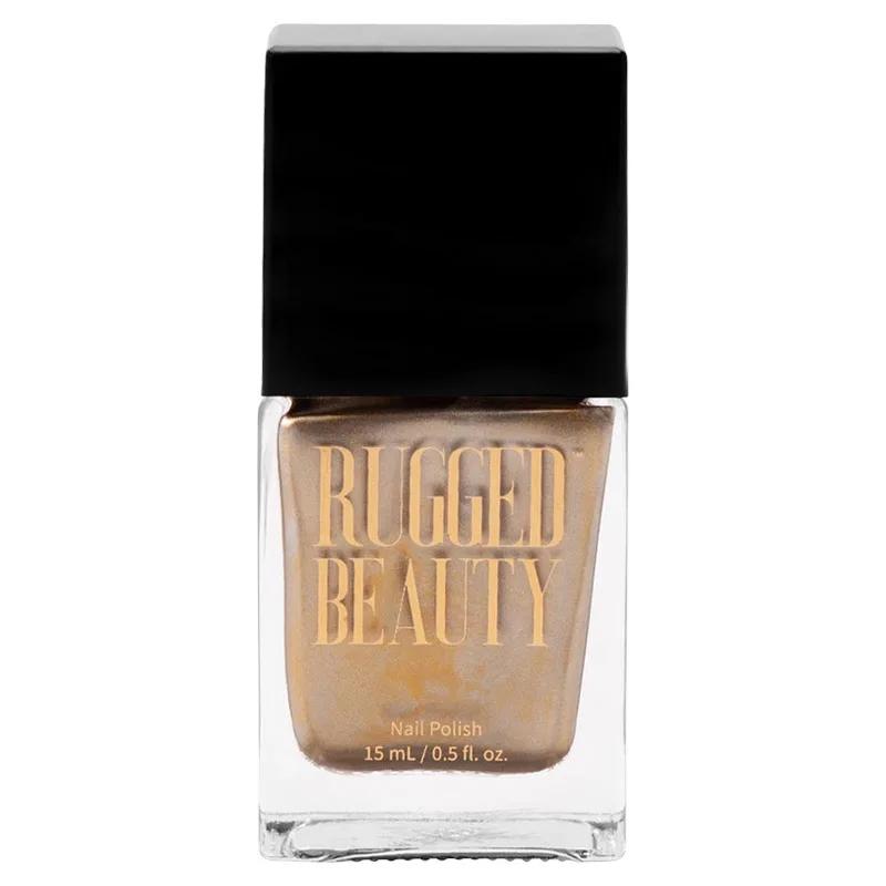 Adore the subtle shine of this bright golden nail polish, the Rugged Beauty Nail Polish - Gold Tinsel. This metallic nail polish is more neutral and toned down compared to other gold polishes, making this polish great for anything! Each Rugged Beauty polish has a removable square cap to reveal a smaller round cap for simple and quick application.