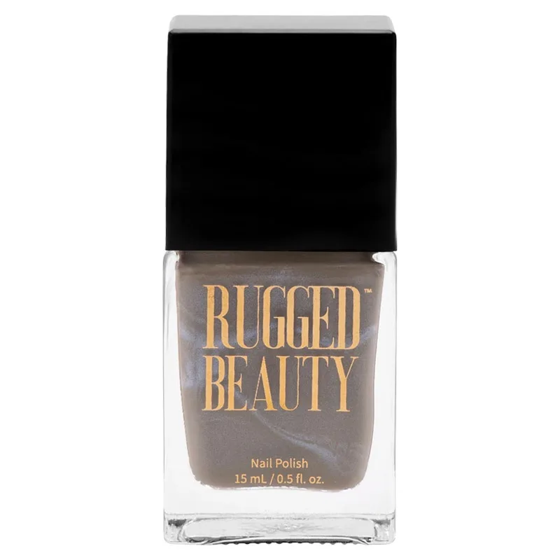 Ground yourself in style with the Rugged Beauty Nail Polish - Grace & Gratitude. This beautiful grey tones olive polish is uniquely crafted with pearl extract leaving you with a stunning shimmery finish. Each Rugged Beauty polish has a removable square cap to reveal a smaller round cap for simple and quick application.