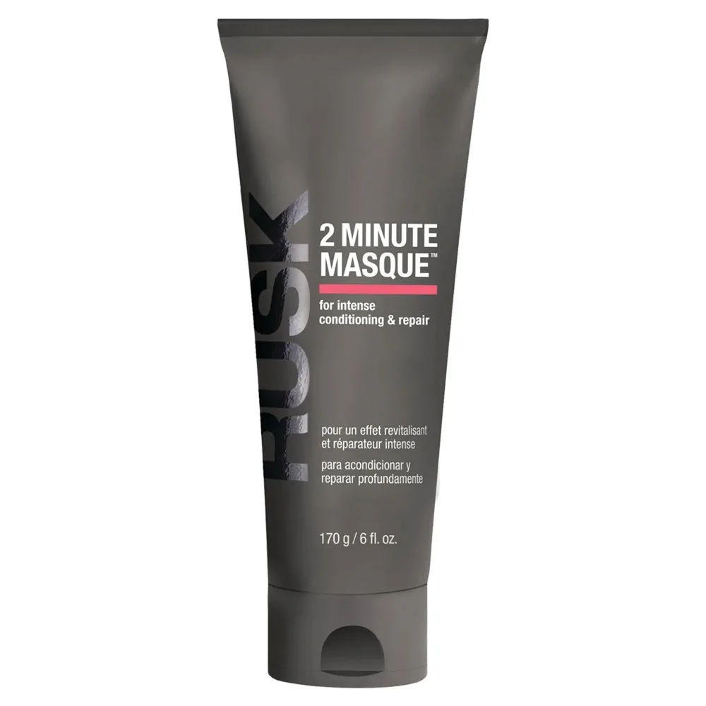 Treat and transform your hair with the Rusk 2 Minute Masque. This intense conditioning masque is designed to help begin to repair and restore hair in as little as two minutes! Featuring a weightless formula, the unique viscosity of this masque glides through the hair for a quick and even application every time. Infused with Microalgae and ingredients inspired by the Mediterranean Berry, which helps moisturize the scalp, deeply hydrate, and restore hair's softness, for healthier-looking hair after just one use! The Rusk 2 Minute Masque for Intense Conditioning & Repair is formulated with P3 technology that helps keep color longer, strengthen hair, reduce breakage, fight frizz, and repair split ends up to 44%.
