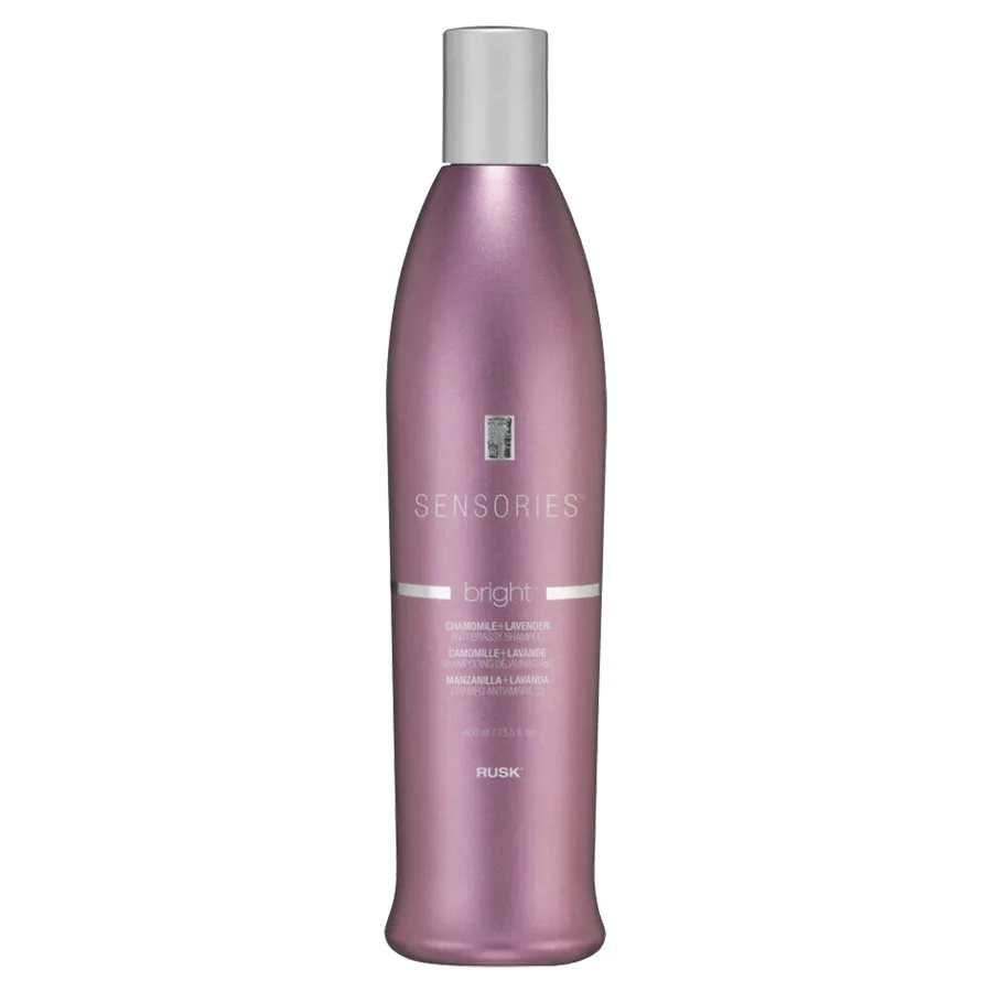 The Rusk Sensories Bright Anti-Brassy Shampoo is designed to efficiently eliminate and neutralize yellow or brassy tones, regardless of whether you have highlighted or blonde-tinted hair. It not only restores manageability but also enhances shine. This shampoo contains a unique blend of ingredients including chamomile and lavender, known for their color-enhancing properties, as well as wheat proteins that strengthen the hair. Additionally, it features moisturizing honey and UVA/UVB protectants to nourish and shield your hair from damage. With the added benefits of argan oil and awapuhi, this shampoo provides intense hydration and a lustrous shine to your locks.