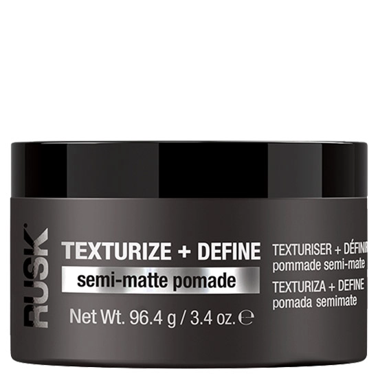 Texturize and define your hair with the Rusk TEXTURIZE + DEFINE Semi-Matte Pomade. This buildable pomade provides hair with a semi-matte finish, light texture, and definition and is ideal for all hair types and textures. Providing structure, this flake-free formula will hold your style in place without weighing it down. Formulated with ingredients that help heal, restore, and revive hair, the Rusk TEXTURIZE + DEFINE Semi-Matte Pomade is the perfect addition to your styling routine.