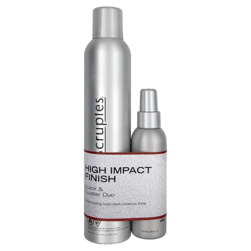 The Scruples Lock & Luster Holiday Duo features the Scruples Hypershine Repair Spray paired with the Scruples High Definition Hair Spray to create styles that are packed full of shine, health, and incredibly high holding power! This incredible hair styling duo is ideal for all hair types and textures and leaves styles looking their absolute best.