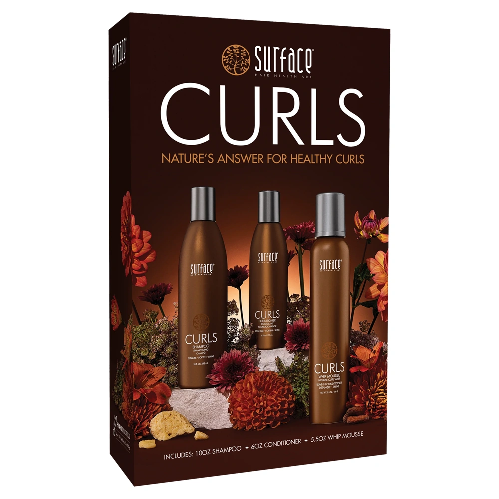 The Surface Curls System Trio features the Surface Curls Shampoo, Conditioner, and Whip Mousse to provide your curls and coils with top-notch hydration and nourishment that help to nurture your curls back to life!
