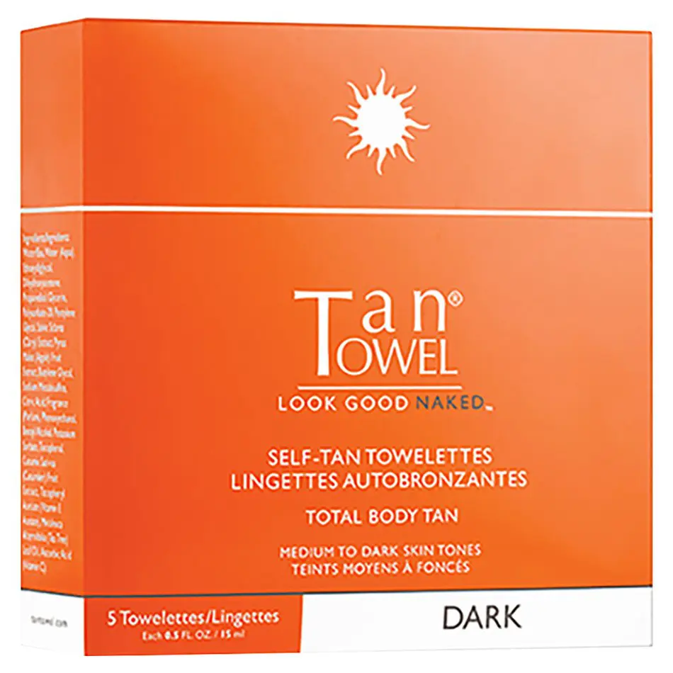 Achieve a flawless sun-kissed look with TanTowel Self Tan Towelettes - Total Body Dark. These innovative towelettes feature a clear formula for seamless application and a streak-free finish. Designed for medium to dark skin tones, the Dark shade provides a stunning summer radiance in just 2-4 hours. The quick application dries instantly, preventing any color transfer to clothing. Infused with DHA, these towelettes interact with your skin's proteins to create a natural tan. Suitable for the face and body, they are ideal for individuals with medium to dark skin tones who tan easily. This self-tanning product caters to those with fair to medium skin tones seeking a beautiful summer glow. With double the size of the Half Body Dark, it ensures professional-quality results for full-body application.