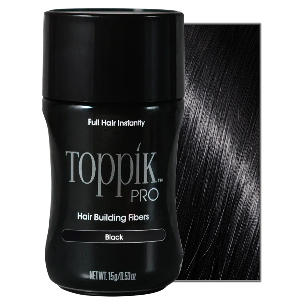 Give your black hair the appearance of thicker and fuller hair with the Toppik Pro Hair Building Fibers.
