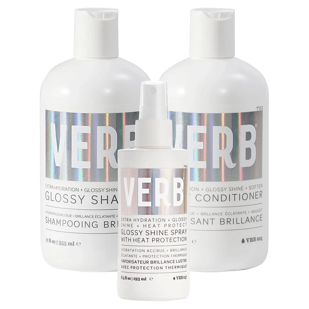 The Verb Glossy Shampoo, Conditioner & Shine Spray Trio is formulated without parabens, gluten, or sulfates, has a vegan formula, and is PETA-certified.