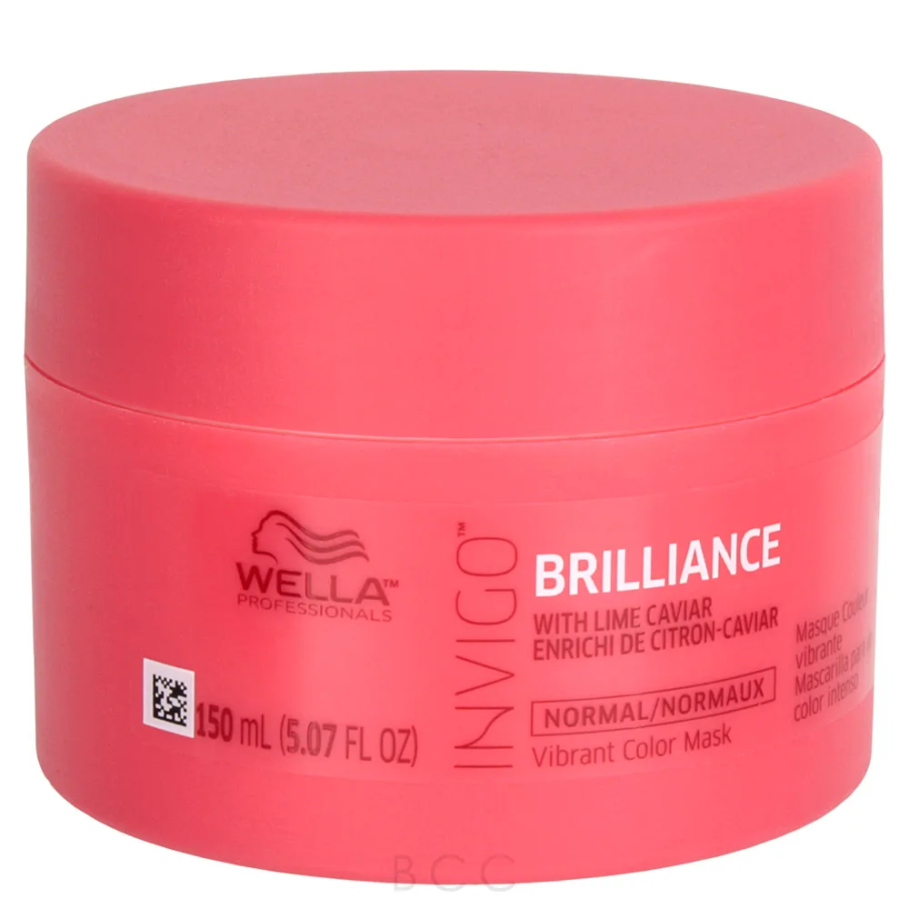 The Wella Invigo Brilliance Vibrant Color Mask - Normal is the ultimate nourishing mask that really feeds and strengthens the hair working to eliminate frizz and adding impeccable shine. This intensive treatment helps to improve the hair's surface while enhancing color vibrancy. With its Brilliance-Blend Technology, this mask uses Copper encapsulating molecules to maintain vibrancy. Histidine and Vitamin E add a layer of oxidation protection to the hair, shielding it from the UV rays' dulling effects. Lastly, Lime Caviar loads hair with antioxidants and vitamins that leave the hair nourished and well protected.