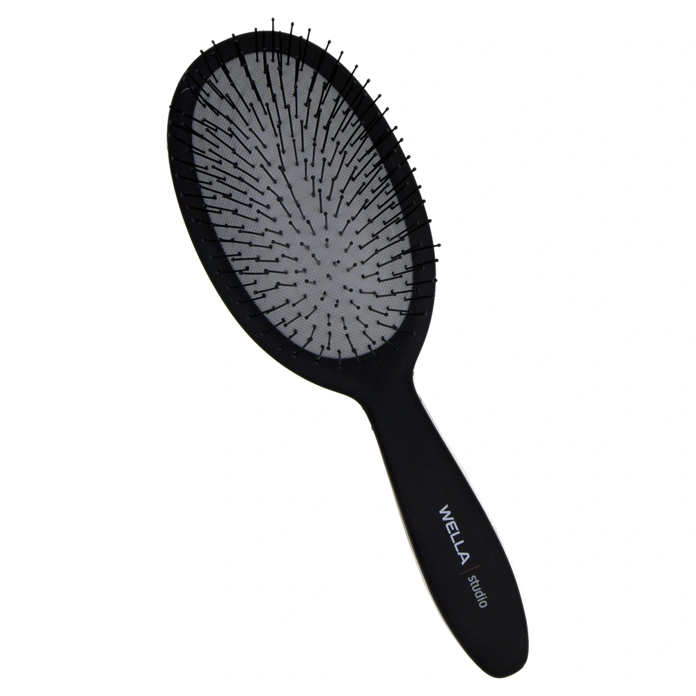 Effortlessly detangle hair strands with the Wella Studio Brush. Everyone needs a little black brush! The Wella Studio Brush detangles even the most stubborn of knots with its ultra-flexible bristles. This brush works well on both wet and dry hair and is fantastic for all hair types, extensions, and wigs.