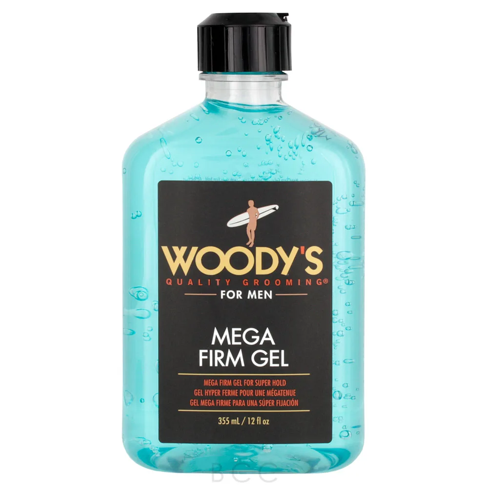 Woody's Mega Firm Gel is a firm alcohol-free styling gel that provides a super strong hold and great shine without loading up on polymers. Won't dry your hair or scalp and definitely won't flake-off.