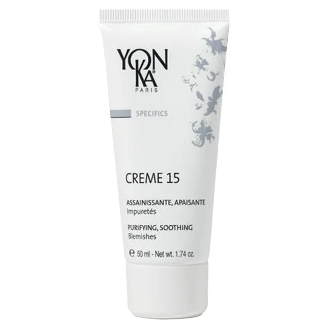 The Yon-Ka Specifics Creme 15 is a triple-complex natural treatment cream for oily skin that treats impurities without drying out and aggravating skin. This light, nongreasy fast-absorbing cream with extracts of burdock and sage helps to purify, soothe, and regulate the skin's sebaceous secretions. The Yon-Ka Specifics Creme 15 uses a recovery complex featuring plant-based extracts of chamomile, arnica, and witch hazel to soothe and help heal troubled skin. Yon'ka's proprietary Yon-Ka Quintessence and lime essential oil helps detoxify and purify skin to prevent future problems. For problem skin at all ages and occasional breakouts and blemishes.
