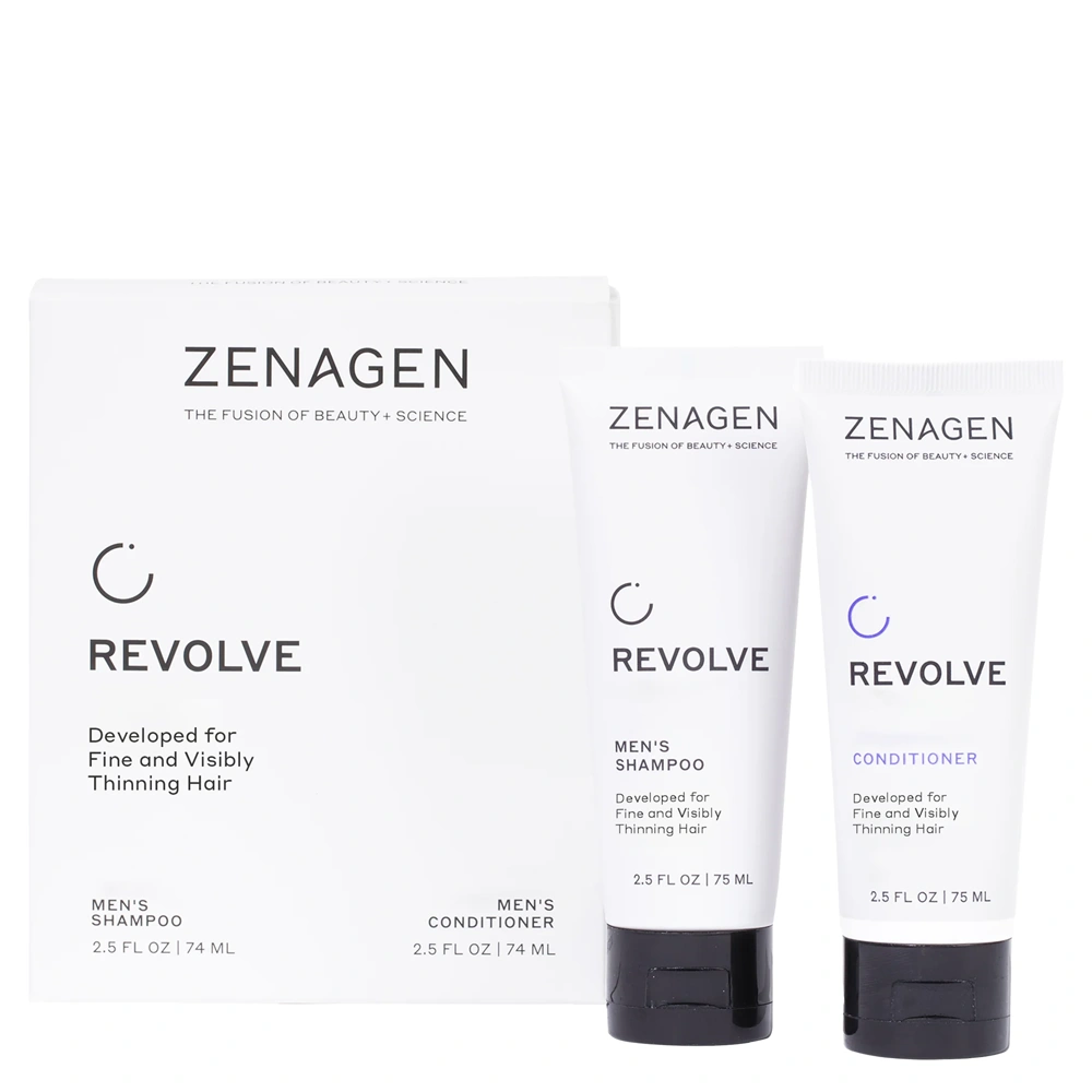 The Zenagen Revolve Men's Travel Kit is designed for men who are experiencing visibly thinning hair. This kit features the Zenagen Revolve Shampoo Treatment for Men paired with the Zenagen Revolve Conditioner to help you protect and fight hair loss, no matter where you go!